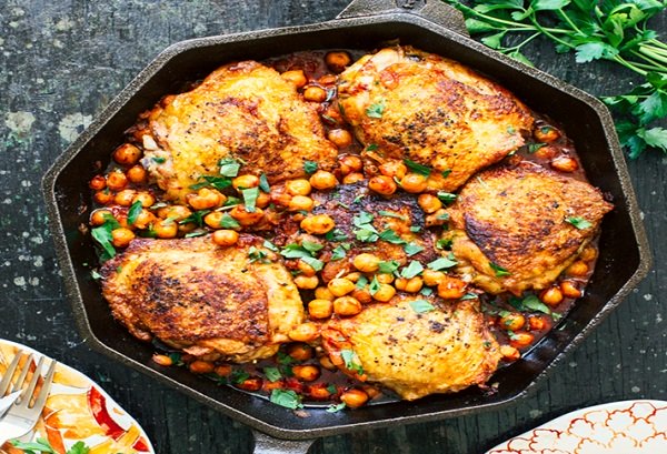 - نضيف قطع الدجاج للمقلاة لنضعها بالفرن على درجة 425 فهرنهايت حتى ينضج الدجاج خلال 20-25 دقيقة