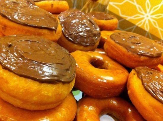 - في زيت غزيرساخن نقلي الدونات ننتبه عندما نضعها في الزيت ان نقلبها بمجرد ان ترتفع الى فوق ثم نحمرها من الجهتين .