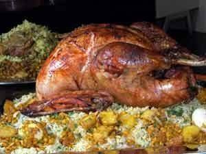 - يوضع داخل الديك حبة تفاح وطماطم وبصل.