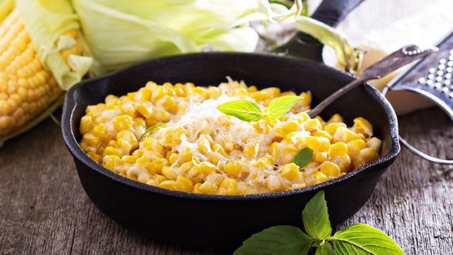 3- ضعي الذرة في طبق التقديم وزيّني بجبن البارميزان. قدّمي الطبق ساخناً. ألف صحة!