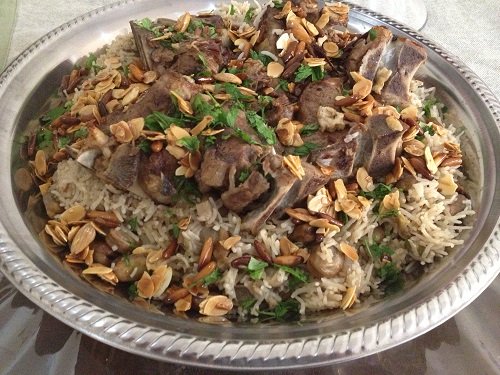- رتبي الأرز في طبق التقديم، ثم اسكبي قطع اللحمة فوق طبق الأرز عند التقديم.