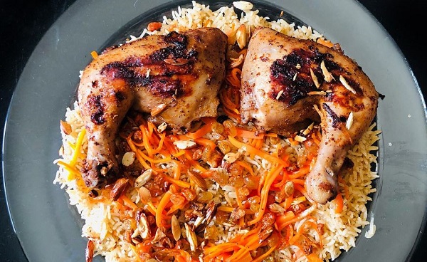 رز بخاري بالدجاج والجزر من الوصفات الشعبية الشهية عبارة عن أرز مطبوخ بالبصل والثوم والجزر وعلى وجهه الدجاج مع توابل رائحتها الزكية لا تقاوم .