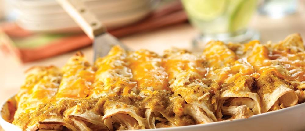 - قومي بلف شرائح التورتيللا ثم ضعيها في الصينية بحيث يكون الجزء الأخير الملفوف لأسفل.