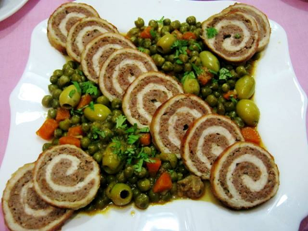 رول الدجاج باللحم المفروم وصفة مشهورة في المطبخ الجزائري وهي عبارة عن رول من الدجاج المحشي باللحم ومن ثم مسلوق يقدم إلى جانبه خضار مطبوخة ويكون جاهزاً .