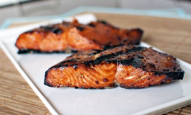 * يتبل السالمون ببشر الليمون و عصير الليمون و تشوح فى طاسه ساخنة مع حلقات الليمون مع زيت او زبدة