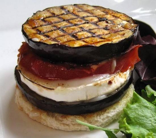 - ضعي شرائح الباذنجان و الطماطم و الجبن الفيتا و الريحان على الكيزر.