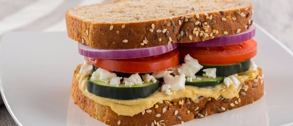 - ضعي ساندويتش الحمص بالخيار و الجبن في طبق التقديم و قدمية.