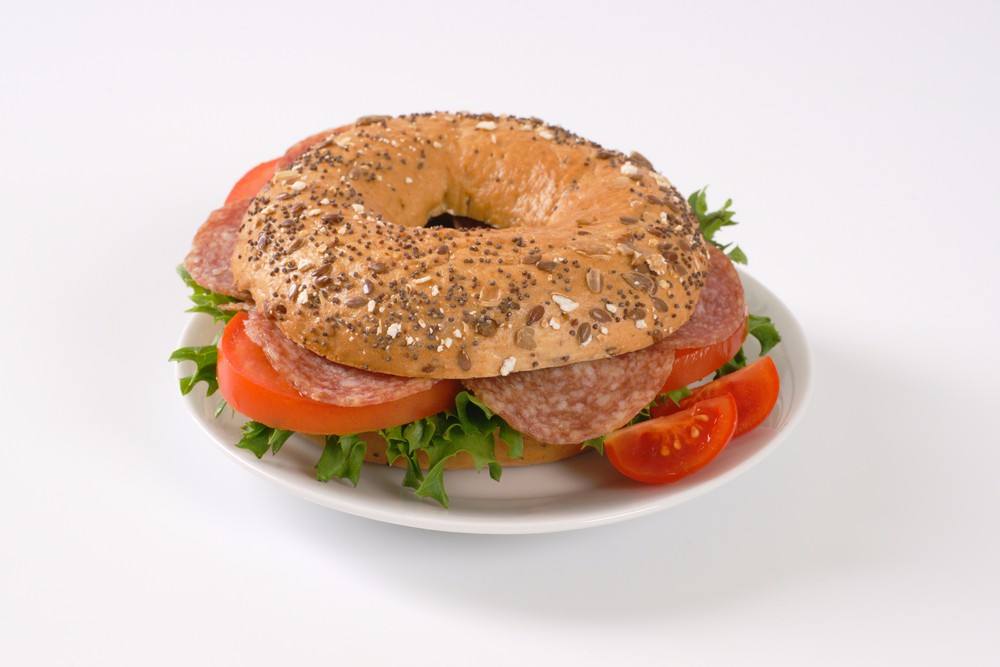 - يفتح البيجل من الجنب ليفصل نصفين.