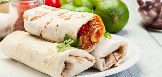 - نلفّ كلّ رغيف على شكل أسطواني، ونقدم السندويشات مباشرة.
