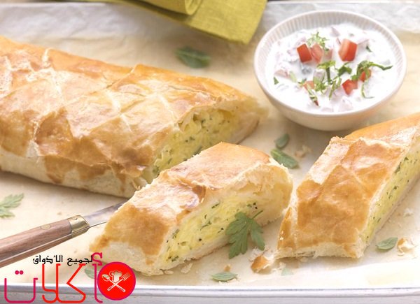 - نمد العجينة على سطح العمل، ونجعلها بشكل رقيق، ثم نضع عليها حشوة البطاطا ونلفها كاملة على الحشوة كالرول
