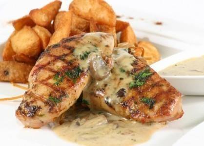 - قومي بشوي صدور الدجاج باستخدام الشواية، ضعي الدجاج في أطباق التقديم ثم رشي عليه الصوص لتقدم ساخنة .