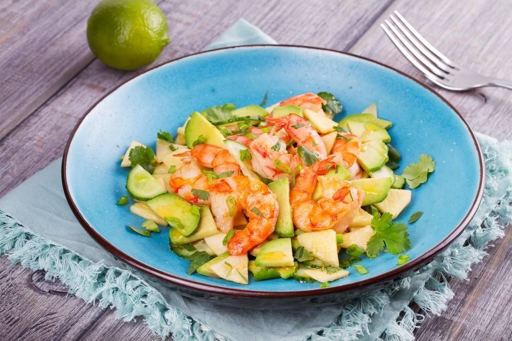 • سلطة أفوكادو بالجمبري غنية بفيتامين ك الذي يحافظ على عظام الجسم ويحمي من الإصابة بهشاشة العظام