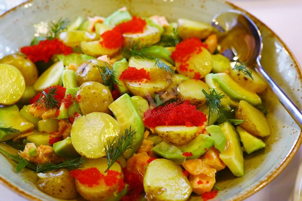 سلطة جديدة و منوعة بالخضراوات إليكى سلطة الأفوكادو و الجبن ذات المذاق الطيب الرائع و إليكى الطريقة .