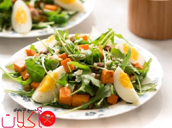 سلطة البطاطس والجرجير ، تتكون هذه السلطة الصحية من البطاطا الحلوة والجرجير والفستق الحلبي وجبنة فيتا الشهية مع صلصة ليمون شهية يمكن استبدالها بالخل وهي سهلة التحضير حيث تكون جاهزة بغضون 10 دقائق فقط .