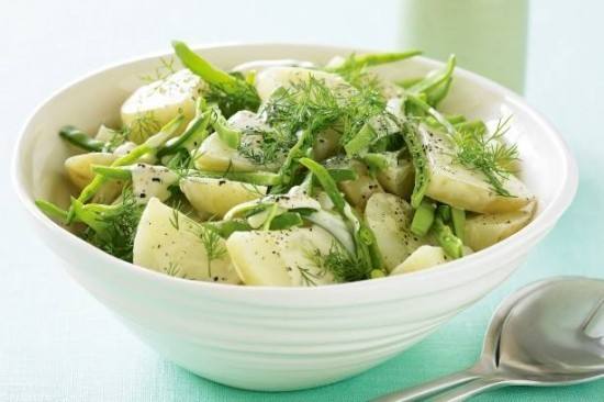 - نسلق البطاطس في ماء مملح لمدة 10-15 دقيقة، حتى تصبح طرية، ثم نصفيها ونضعها جانبا حتى تبرد.