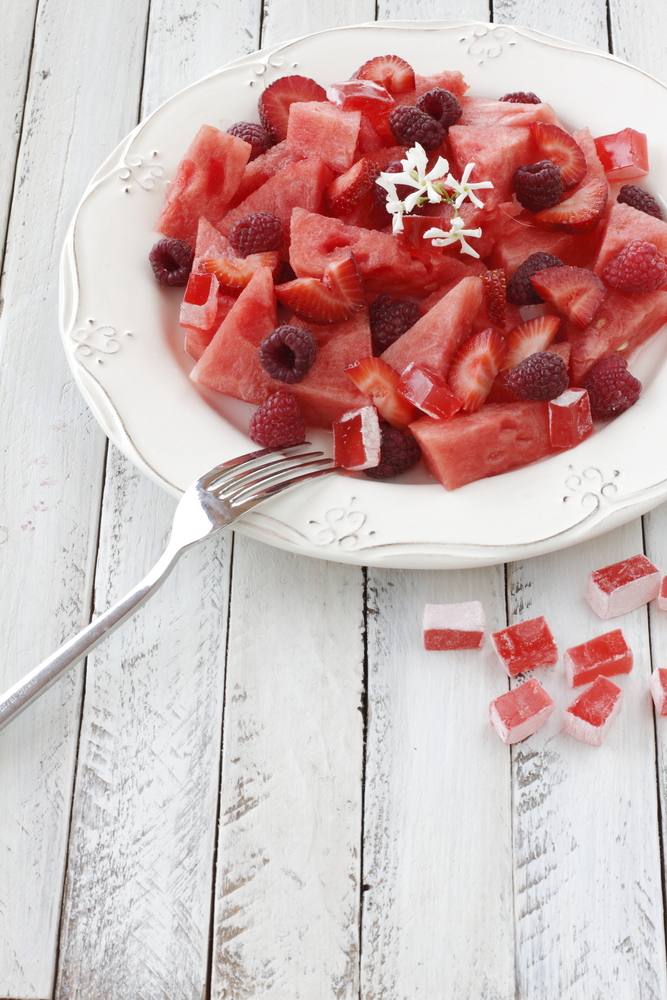 تحضير سلطة البطيخ والراسبيري مع المسكربون