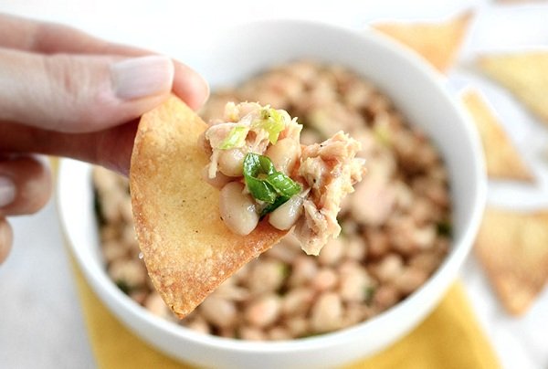 سلطة التونة بالفاصوليا البيضاء هي سلطة البروتينات بالفاصوليا والتونة مع تتبيلة الثوم وزيت الزيتون والبصل والفليفلة الحمرا، ويتم تقديمها على أوراق الخس بصحن التقديم ورشة من الريحان المفروم على وجهها .