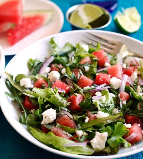 طريقة تحضير سلطة الجرجير والبطيخ :