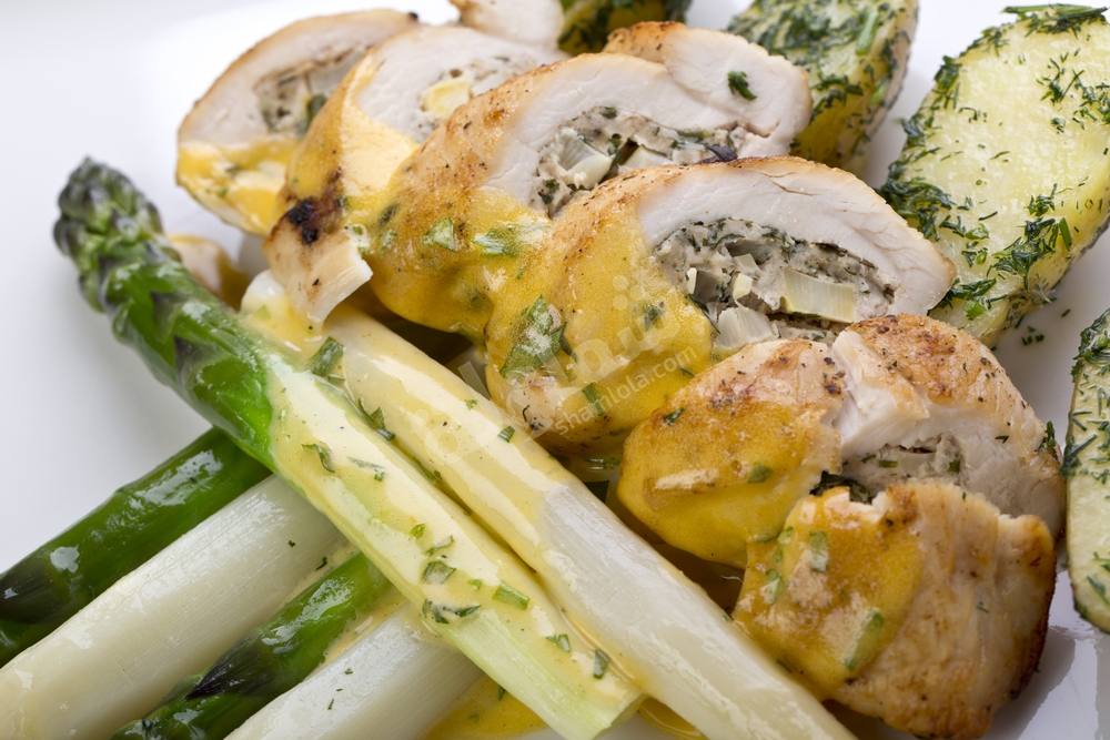 - توضع الفاصوليا و الإسبراجس في طبق حراري و تغطي مع الماء المغلي و تترك لمدة 3 دقائق ثم تضفى و تضاف إلى البطاطس مع الدجاج و الشبت والتشافيز و ينثر عليها باقي التتبيلة و تقلب بلطف لتتجانس و تقدم .