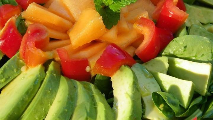 - ضعي نصف كمية الكانتالوب و الأفوكادو في كل طبق.