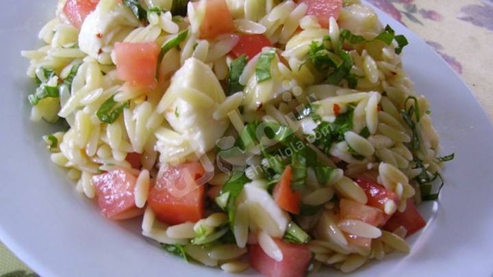 - احضري بولة سلطة كبيرة ثم ضعي بها الجبن الموزاريللا و الطماطم و الريحان و الفلفل الأحمر المجروش و الملح و زيت الزيتون.