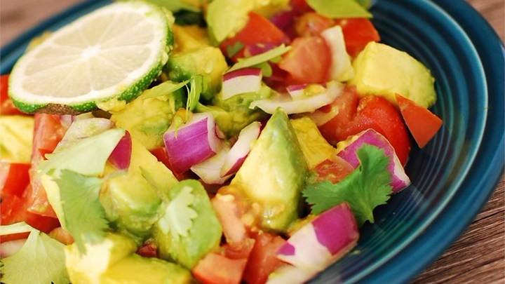 - في بولة كبيرة الحجم ضعي الطماطم المقطعة و الأفوكادو و الثوم.