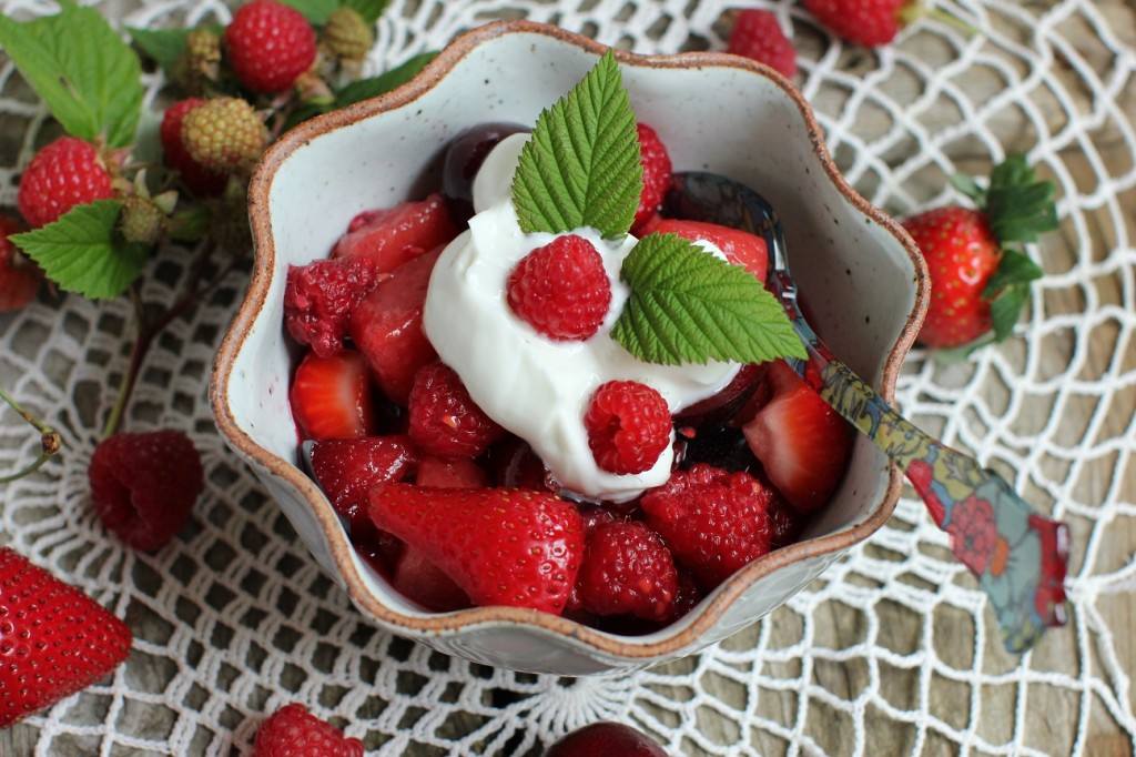 إقتراحات لسلطة الفواكه الحمراء مع زبادي الفانيليا