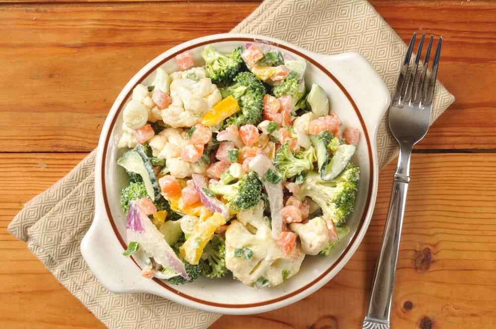 - نصفي البروكلي من الماء، ونضعه في البولة مع القرنبيط، ونضيف إليهم المايونيز والطماطم والملح والكمون وزيت الزيتون وعصير الليمون، ونقلبهم جيداً حتى يتجانسوا.
