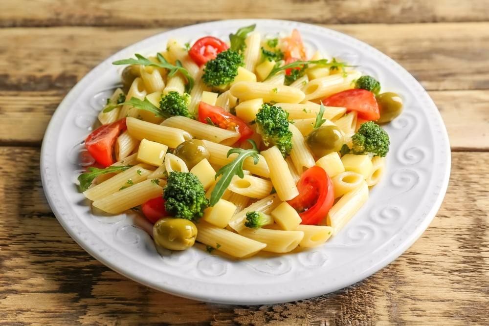 - توضع الطماطم في وعاء ويضاف إليها البروكلي والزيتون، وتخلط جيداً.