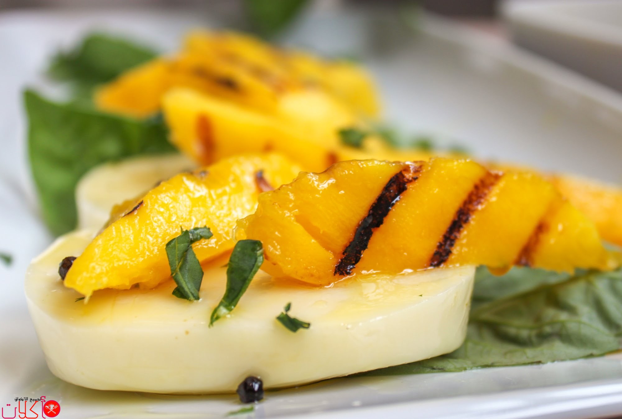 - شرّحي المانجو بشكل مائل وضعيه قليلا في السخانة الكهربائية وضعيهم في طبق تقديم على شكل مروحة.