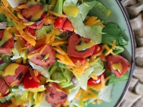سلطة سريعة ولذيذة لمحبي النقانق جديدة ومبتكرة اذا كنتي من محبي النقانق اسرعي وجربيها.
