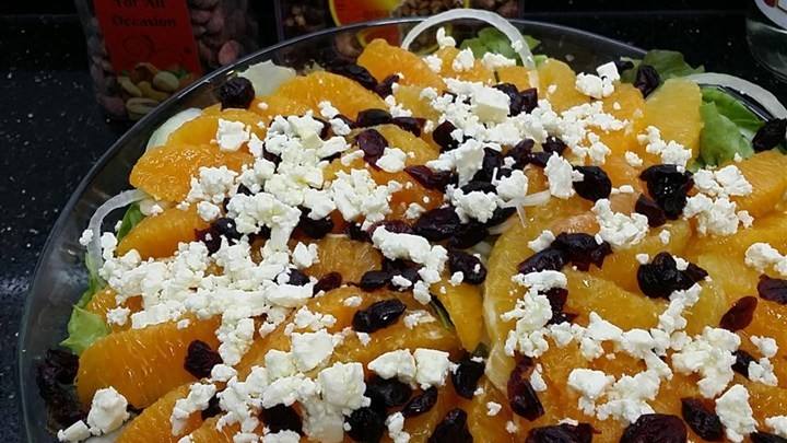 - ضعي اللوز فوق مزيج اليوسفي و التوت المجفف.