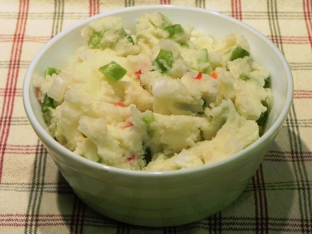 - توضع البطاطس في بولة، ثم تهرس جيداً حتى تنعم.