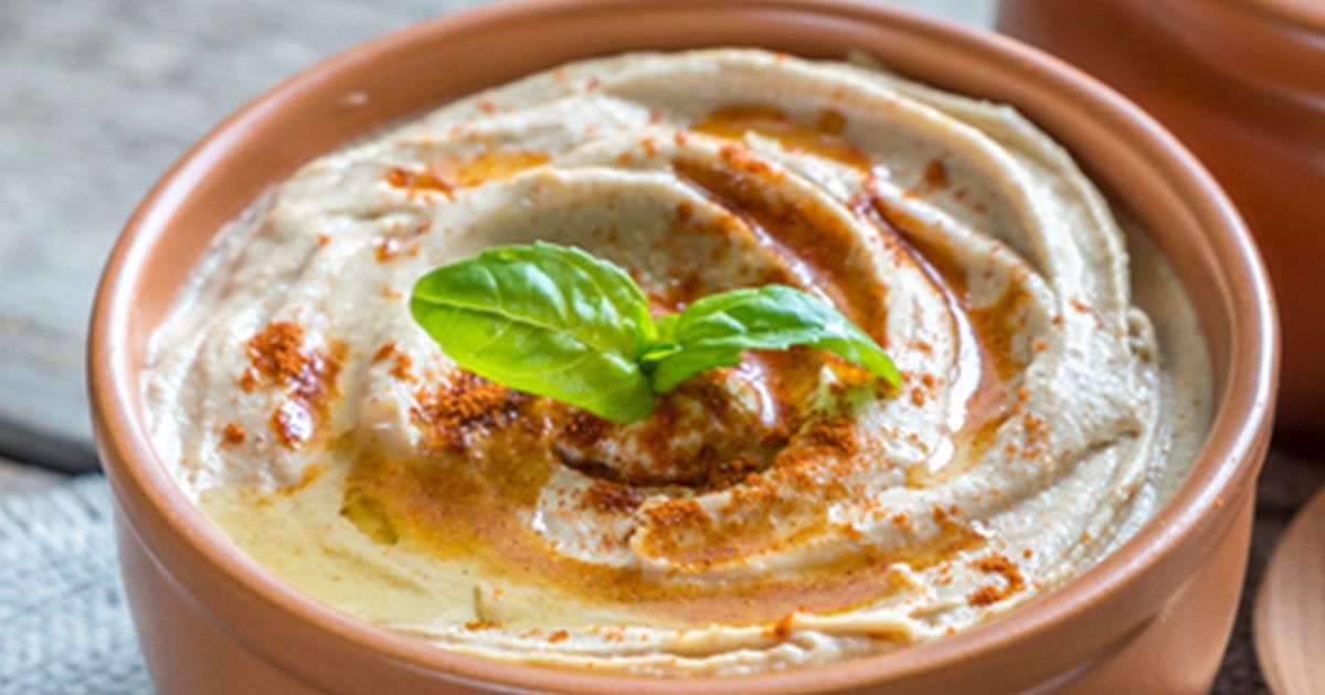 1- في الخلاط الكهربائي، ضعي الحمص، الطحينة، اللبن الزبادي، الثوم، الكمون، الملح والفلفل الأبيض. إطحني المزيج حتى يتجانس.