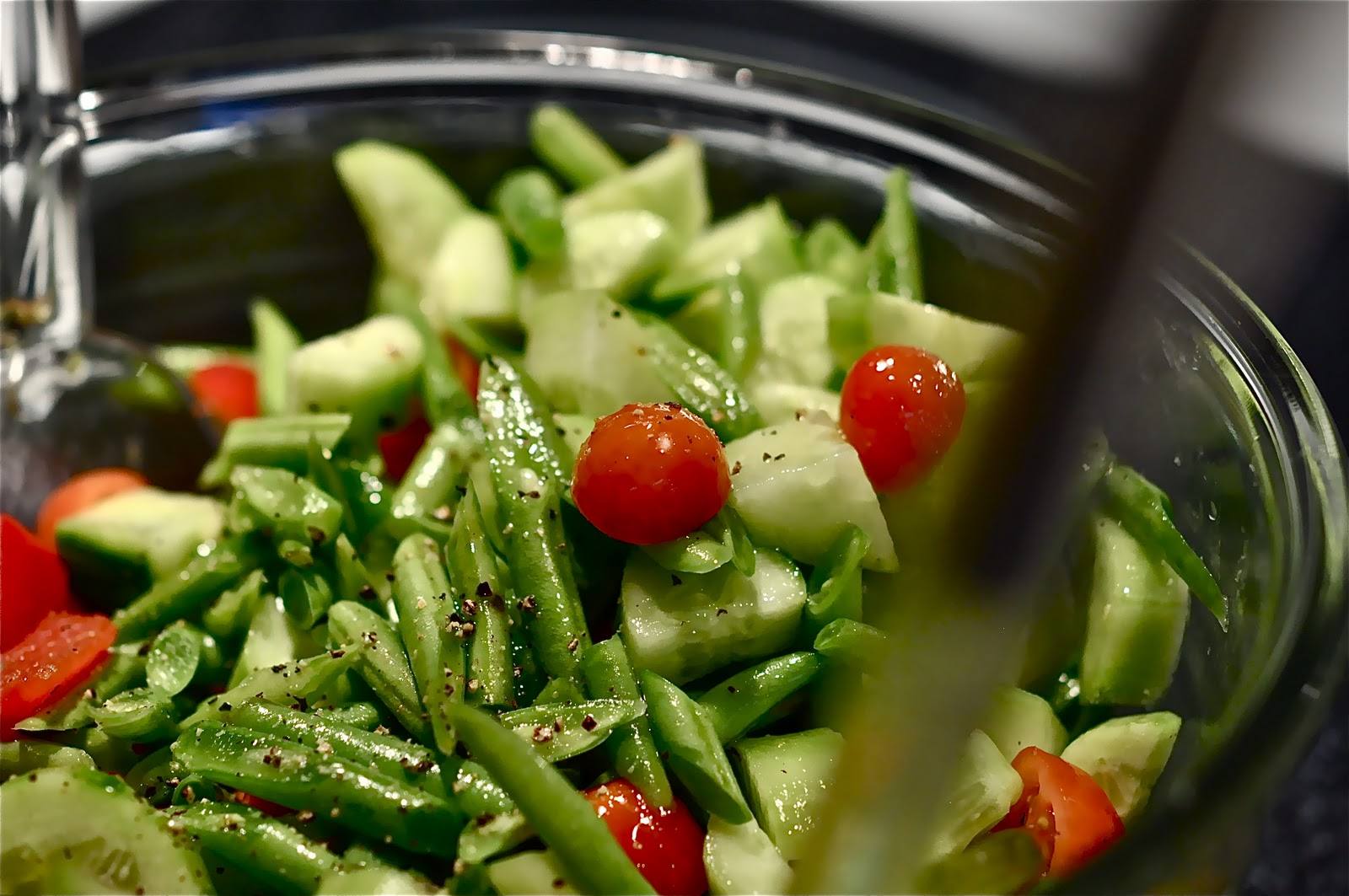 حضرى لعائلتك وأولادك أحلى و أسرع طبق سلطة إليكى سلطة طماطم شيري بالخيار والفاصوليا الخضراء وإليكى الطريقة .
