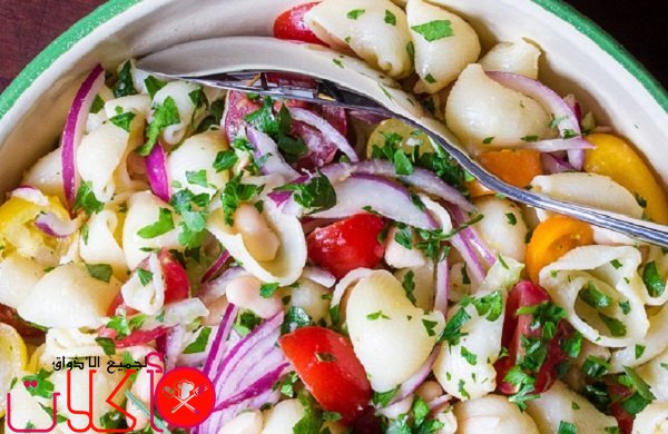 سلطة فاصوليا بالمكرونة ، تتميز هذه السلطة بنكهات مختلفة عن سلطات الباستا المعروفة فهي تتكون من الباستا والفاصوليا البيضاء والخضار الطازجة مع صلصة مميزة جداً لا تحتوي على مايونيز .