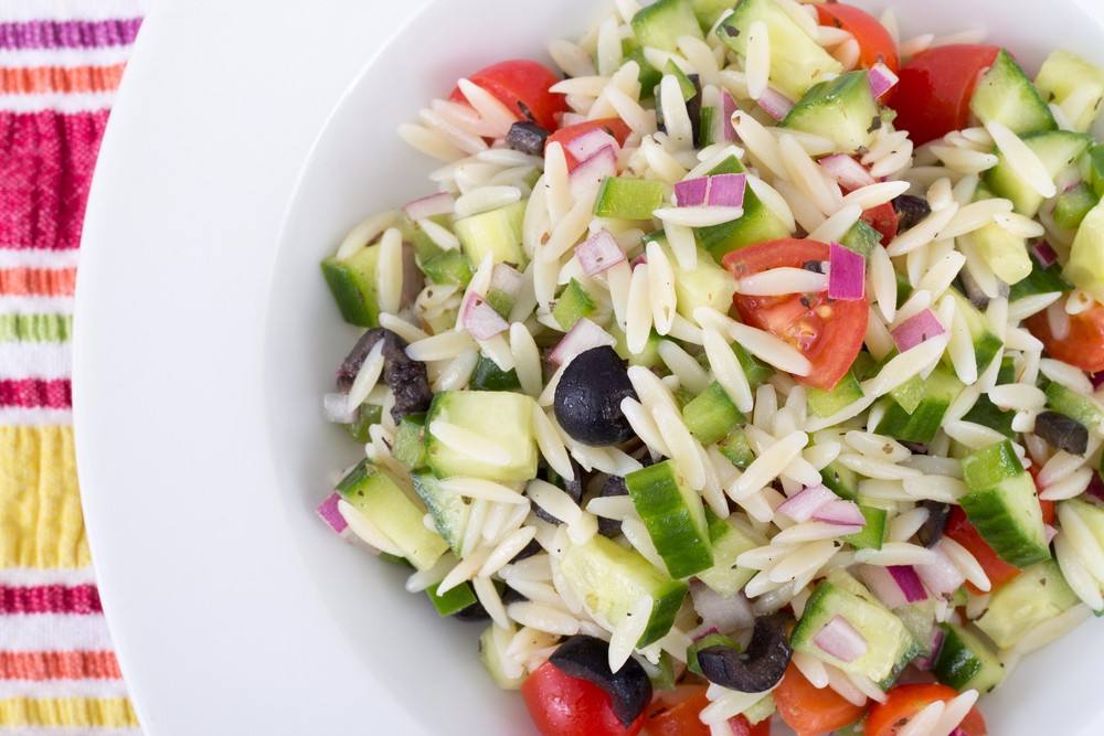 - نضع لسان العصفور في بولة، ونضيف إليه الخيار والطماطم والزيتون والزيت، ونخلطها جيداً.