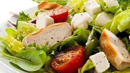 - في وعاء كبير، ضعي الطماطم ، الجرجير، الخيار، الخسّ، قطع الدجاج والخسّ الافرنجي.