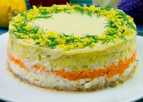 سلطة ميموزا الروسية من السلطات المميزة بشكلها الراقي الذي يضيف لمائدتك شكلاً جميلاً في المناسبات بالإضافة إلى مذاقها الرائع بطبقاتها ومكوناتها ستحبونها بالتأكيد .