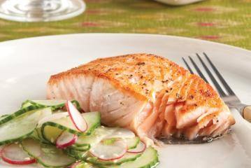 - بعد التاكد من تمام النضج ضعي السمك السلامون في طبق التقديم و ضعيه جانبا.