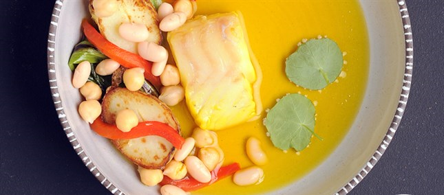 اقتراحات سمك القد مع كونسمييه الزعفران :