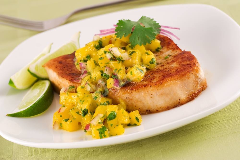 إقتراحات للسمك المشوى مع صلصة الموز والمانجو