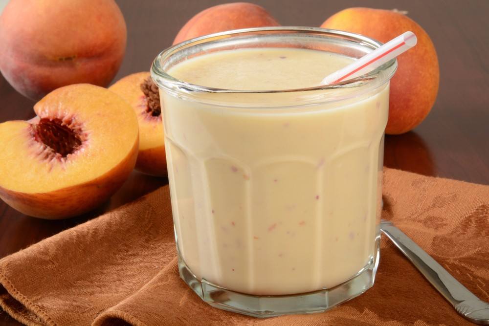 - ضعي سموثي الخوخ بالزبادي في اكواب التقديم.