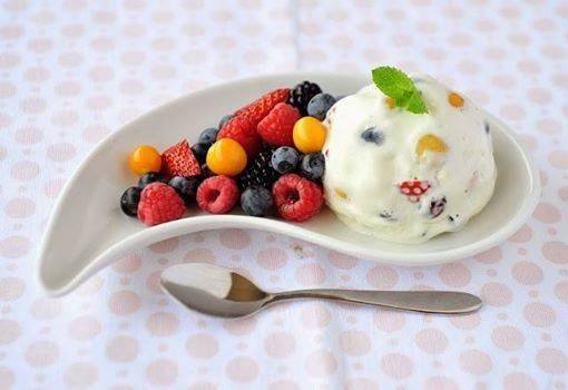 12. يُترك قالب الفريدو فى الفريزر لمدة ساعتين أو حتى يتماسك جيداً، ثم يُقطع أو يُوزع بملعقة الآيس كريم على أطباق التقديم، ويُوزع حوله خليط الفواكه ويقدم.