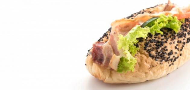 - نحضّر خبز السندويشات، ثمّ نضع داخله طبقة من اللحم.