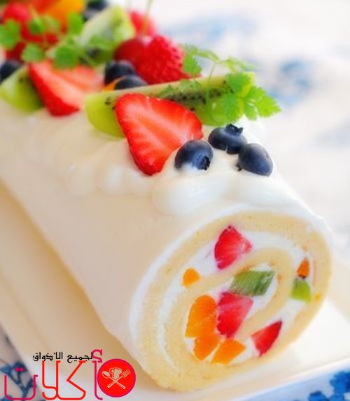 وهي من اسهل انواع الحلويات والذها على الاطلاق فهي عبارة عم كيك شهي ملفوف بالكريمة الشهية والفواكه الرائعة ومغلف بالشوكولا البيضاء واليكم طريقة تحضيره