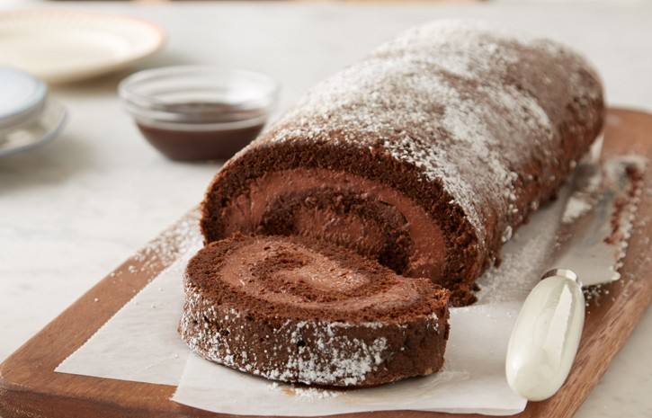 - للتزيين: مدي ما تبقى من الكريمة على السويسرول وزينيه برقائق الشيكولاتة.