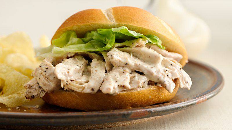 - ضعي ورقتين من الخس على كل قطعة ثمّ وزّعي الدجاج بالتساوي عليها .