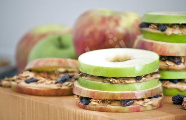 - تدهن شرائح التفاح بزبدة الفول السوداني.