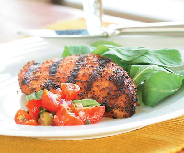 إقتراحات للشرائح الديك المشوية مع صلصة الزيتون الأخضر و الطماطم